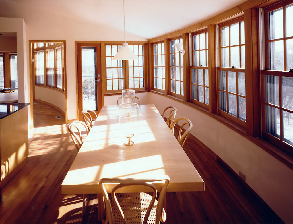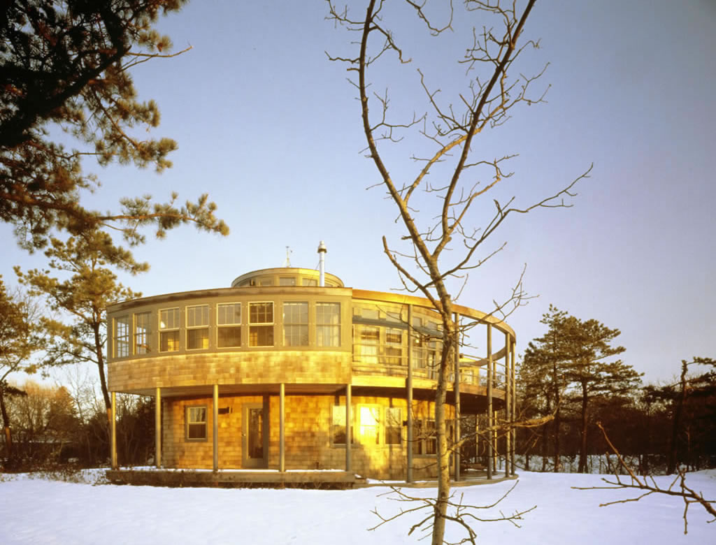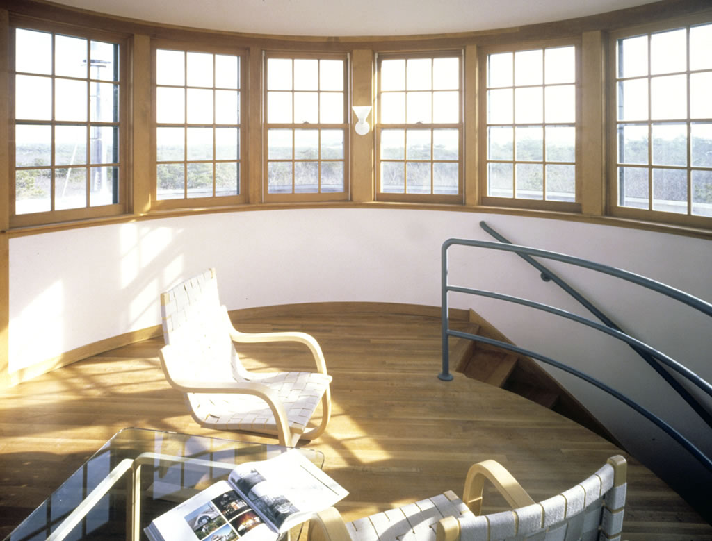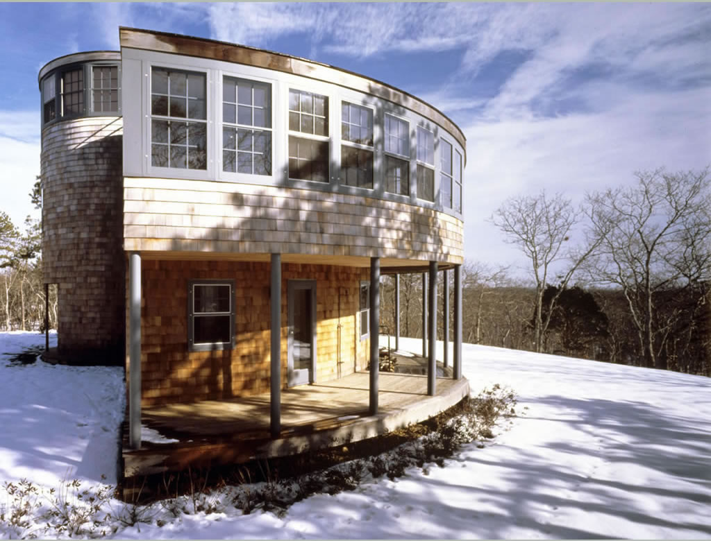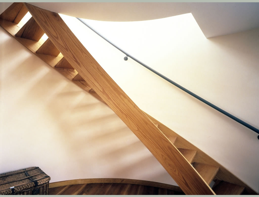¿Una casa puede bailar? Una torre sujeta a su sitio esta casa que tiene sólo dos fachadas y un plan semicircular. Dentro de la torre, una escalera sube a un mirador. Desde su balcón el techo de madera se extiende como la falda de una derviche durante el semah, invitándonos a imaginarla en movimiento y tomando parte como la derviche de una experiencia trascendental. Dentro de la casa, la trayectoria del sol acompaña el ritmo de la vida diaria, desde el despertar con el alba en el dormitorio principal hasta la cena alrededor de la mesa de la cocina al atardecer.